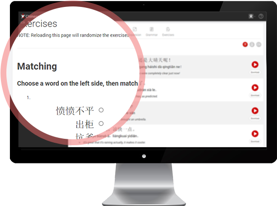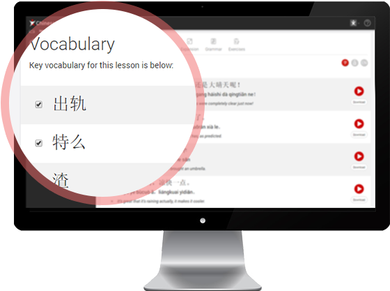Supplement your Mandarin speaking, listening, and pronunciation exercises with our plethora of additional study resources. Each podcast lesson is accompanied by a Dialogue, Vocabulary, Expansion, Grammar and Exercises section. Practice online or download all the resources and study on your own time. These supplementary study resources breakdown lesson’s content allowing for further review including learning the vocabulary or listening to each sentence separately.